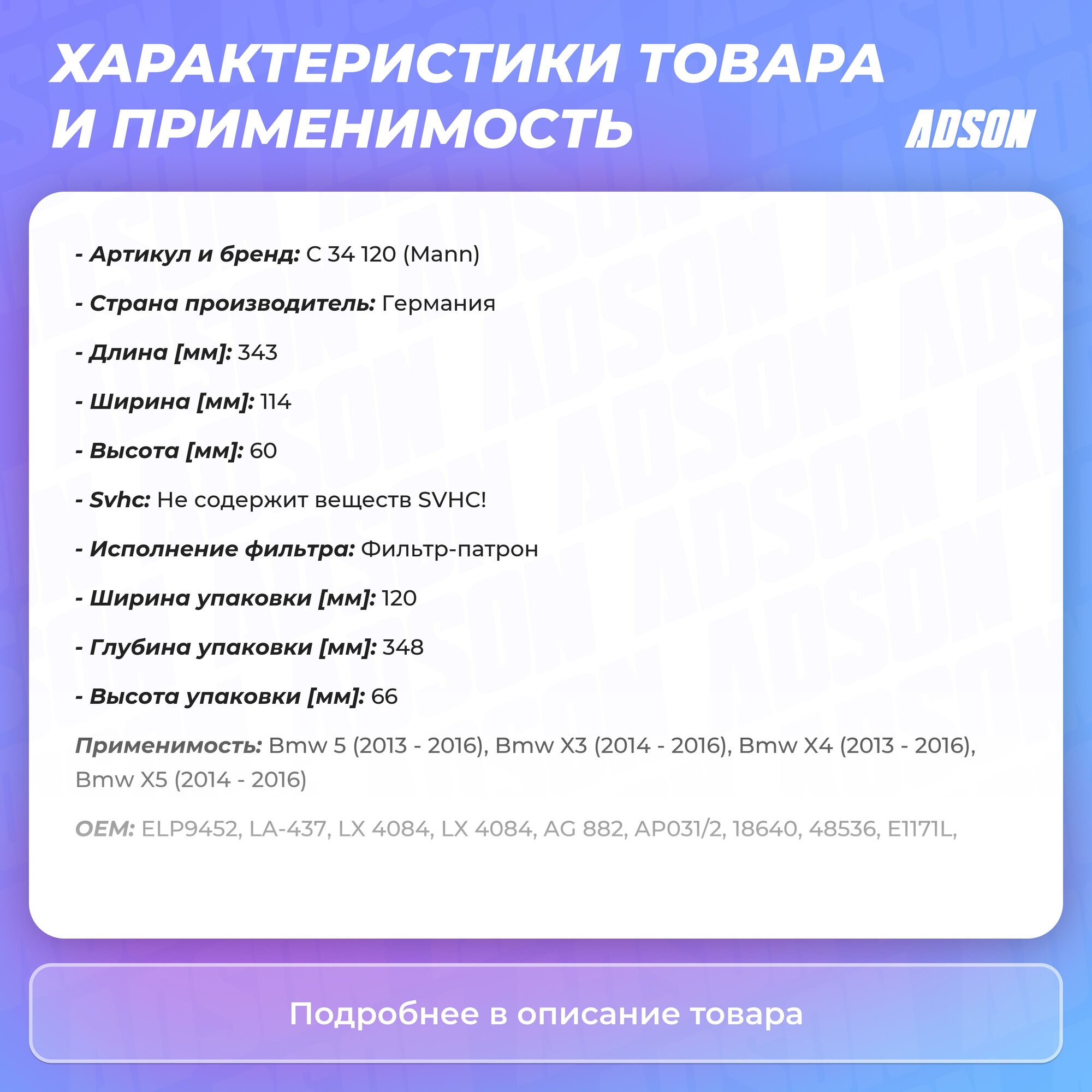 | Наименование модели | фильтр воздушный двигателя C34120 |