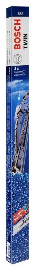 TWIN - серия классических каркасных щеток от компании Bosch. Эти щетки имеют полностью металлический каркас с двойной защитой от коррозии и сверх-точный профиль резинового элемента с двумя чистящими кромками.