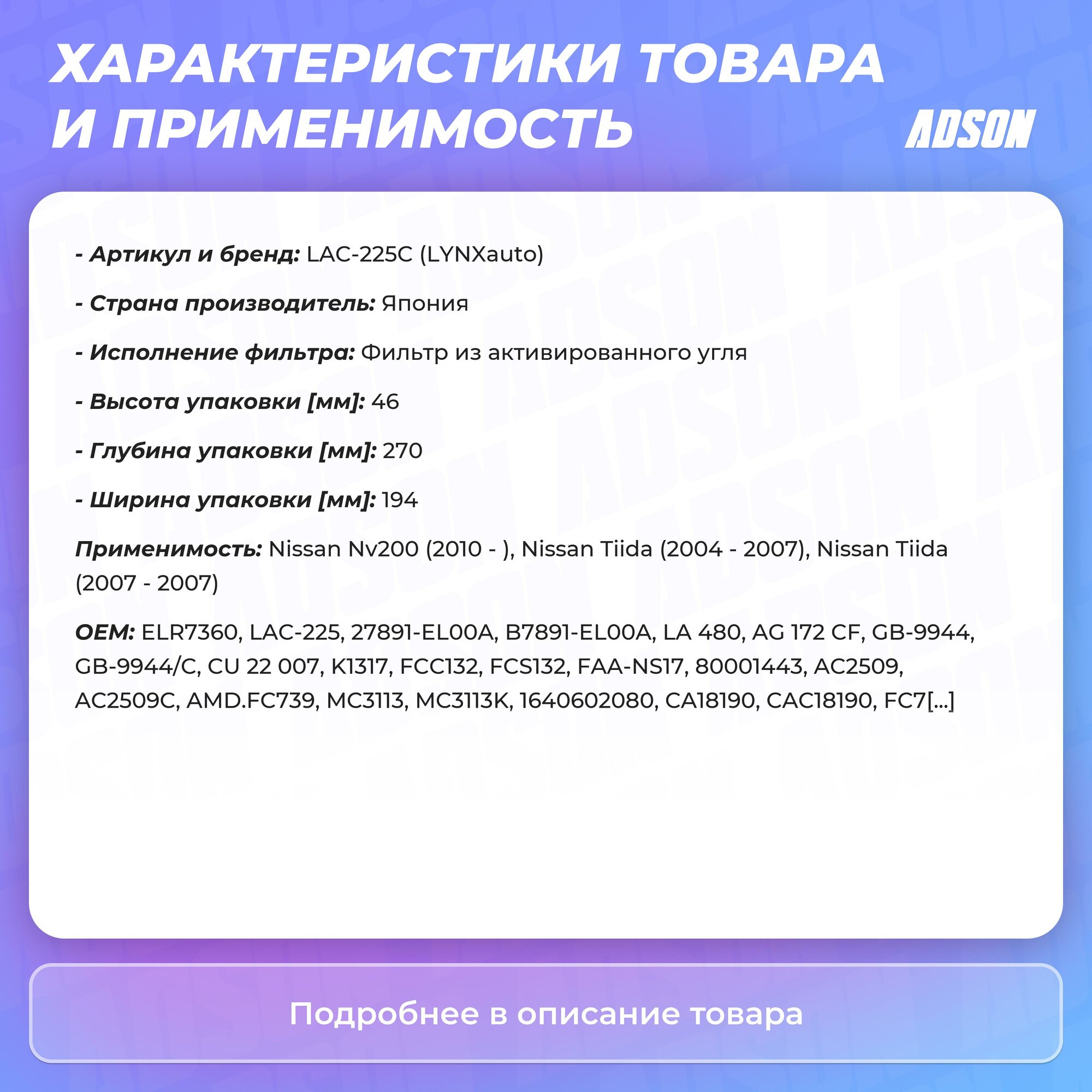 Сервис сравнения цен СкидкаГИД предлагает сравнить цены на товар «Салонный фильтр LYNXauto LAC-225C»