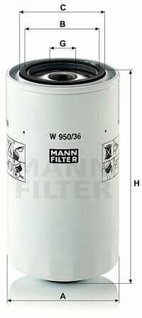 | Наименование модели | фильтр масляный двигателя W950/36 |