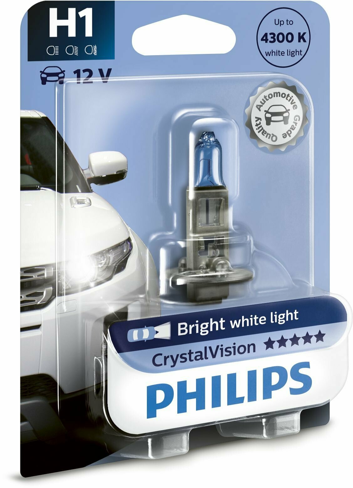 Галогенные лампы головного освещения Philips CrystalVision излучают яркий белый свет 4300 К и станут стильным решением для автомобильного освещения. Благодаря голубому покрытию и серебристому колпачку лампа станет стильным элементом в дизайне автомобиля.