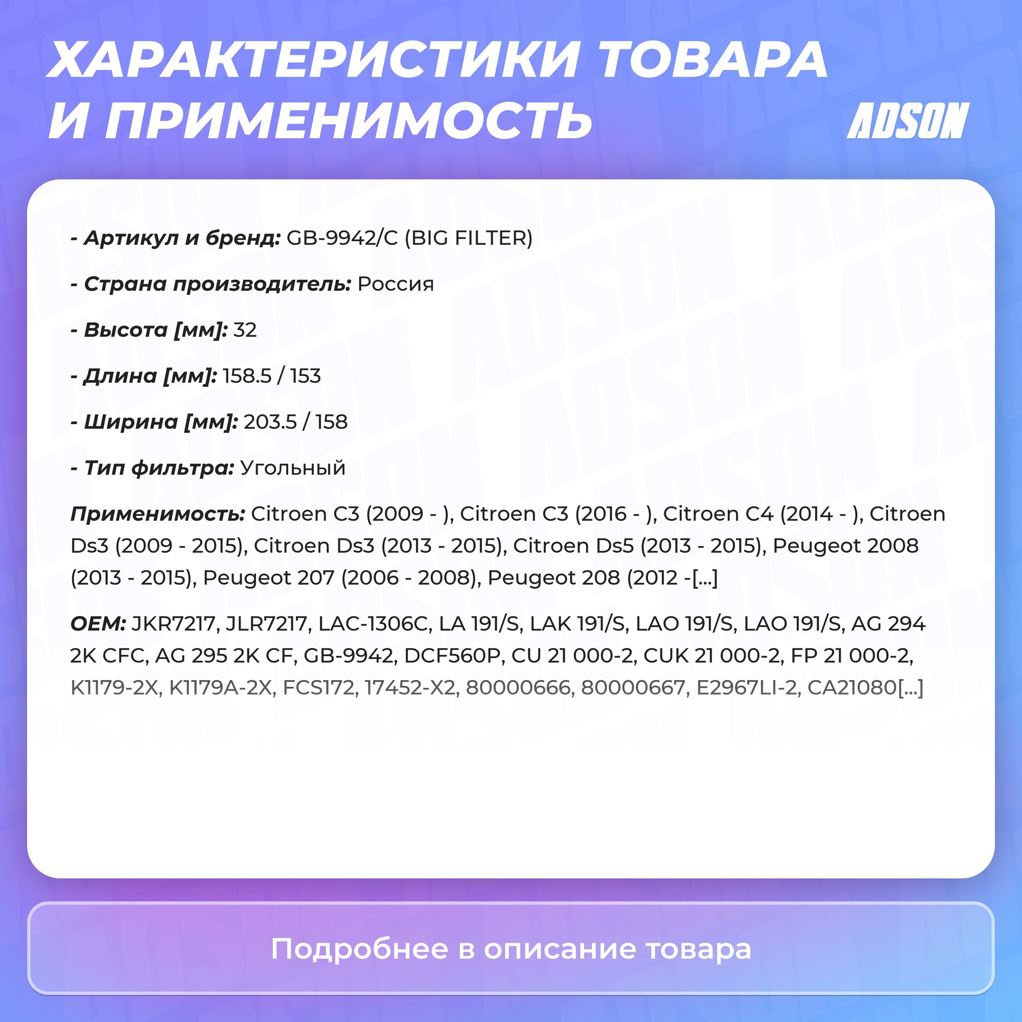 Салонный фильтр BIG Filter GB-9942/C