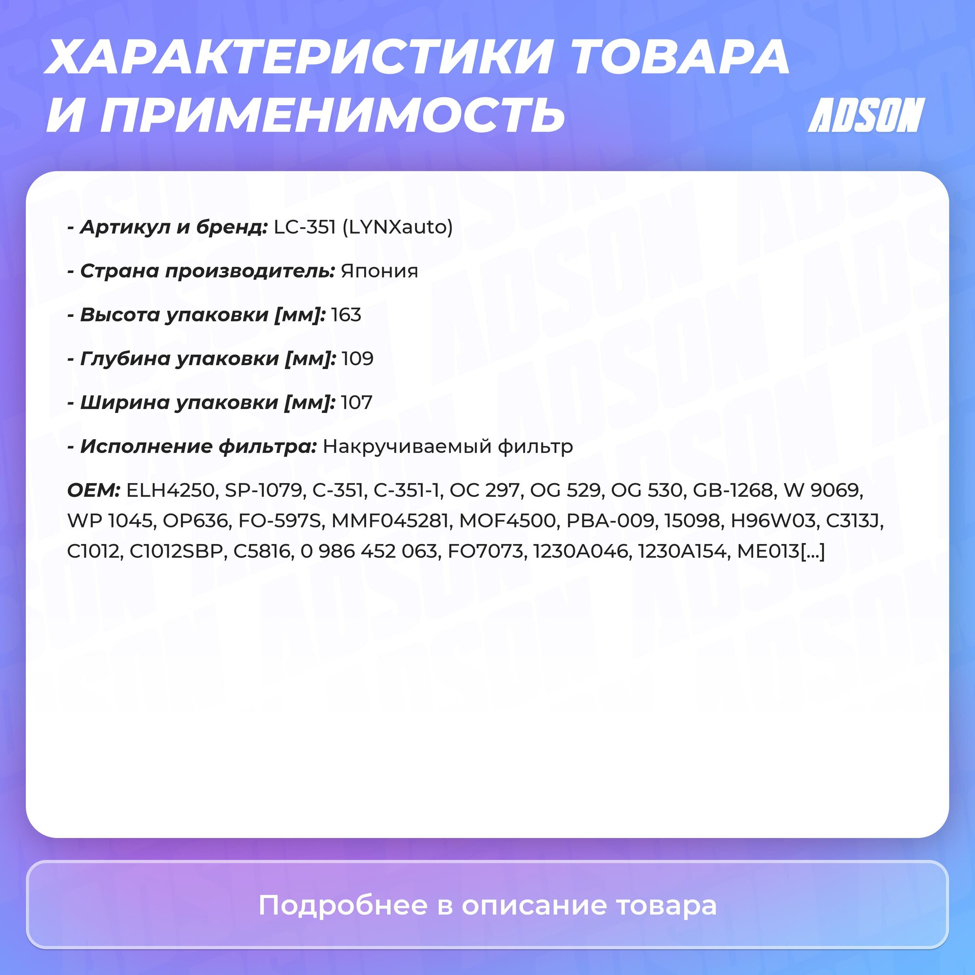 Сервис сравнения цен СкидкаГИД предлагает сравнить цены на товар «Масляный фильтр LYNXauto LC-351»