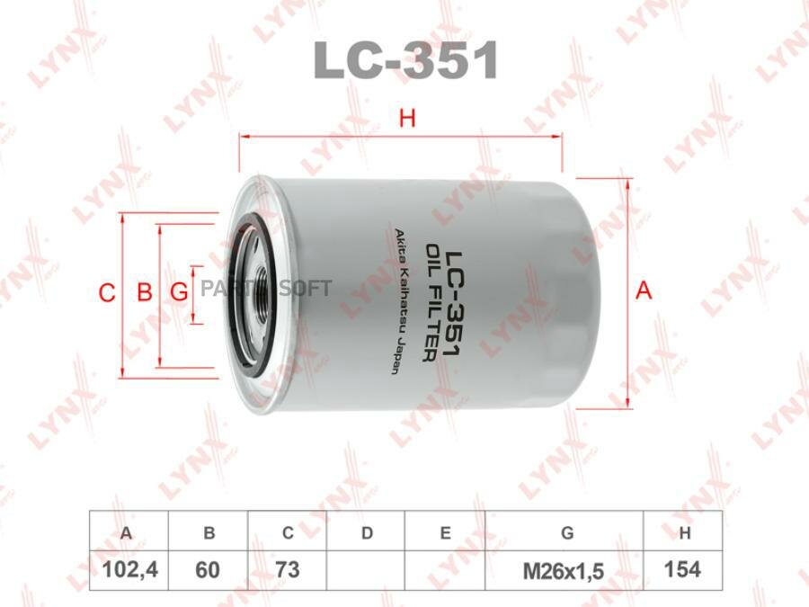 Фильтр масляный бренда LYNXAUTO представляет собой компоненты системы смазки двигателя внутреннего сгорания, предназначенные для очистки моторного масла от механических примесей (нагар, сажа, стружка), что защищает двигатель от износа и сохраняет рабочие характеристики масла. Масляные фильтры LYNXAUTO эффективно удерживают загрязняющие частицы. Надежная конструкция предохранительного клапана обеспечивает снабжение маслом в любых условиях, например: «холодный» старт двигателя или избыточное загрязнение фильтра из-за несоблюдения сроков замены. Высокопрочный материал корпуса выдерживает пиковые нагрузки до 20 кг/см2 и выше.Особенности масляных фильтров LYNXAUTO:Изготавливаются из лучших материалов с применением разработок Akita Kaihatsu.Увеличенный ресурс с сохранением качественных показателей эффективности фильтрации.Надежная защита автомобиля.Применимость: Hyundai Country/HD Light, Mitsubishi Pajero 2.8TD/3.2Di-D 94>.