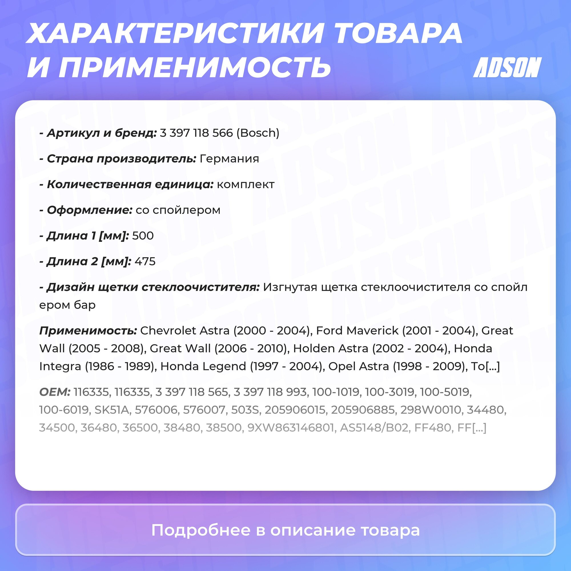 Тип товара: Щётки стеклоочистителя