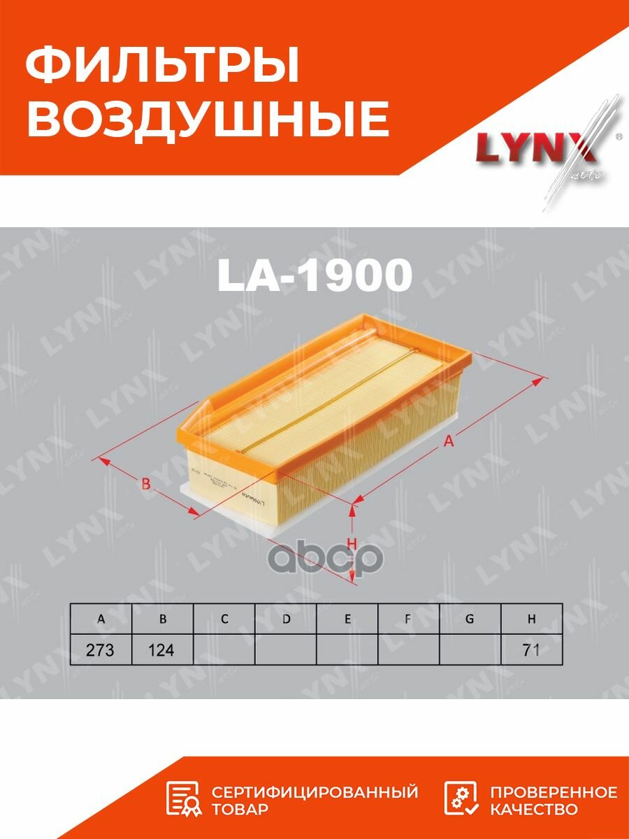 Воздушный фильтр LYNXauto LA-1900