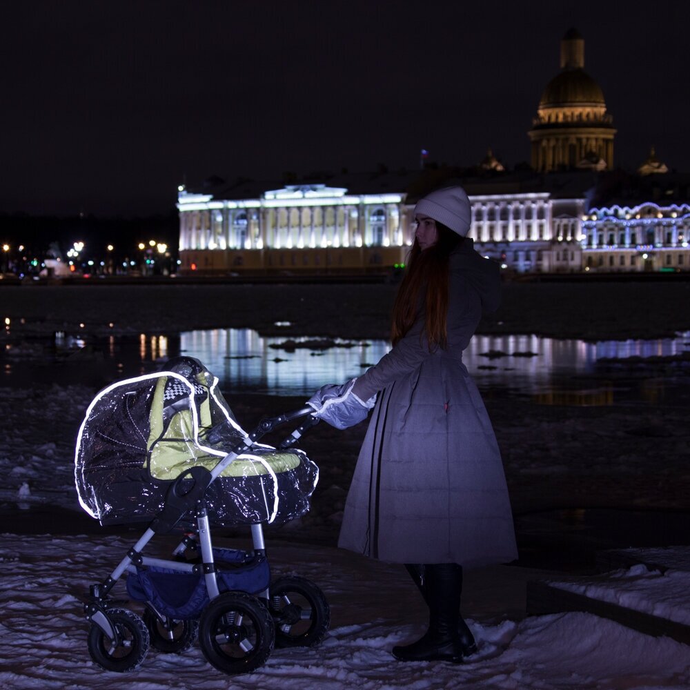 - Светоотражатели, чехол для хранения, действительно подойдёт для большинства колясок, приятная цена, резинки по всему периметру для надёжной фиксации.