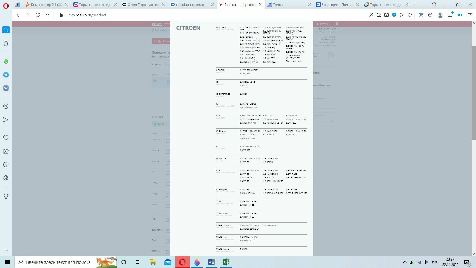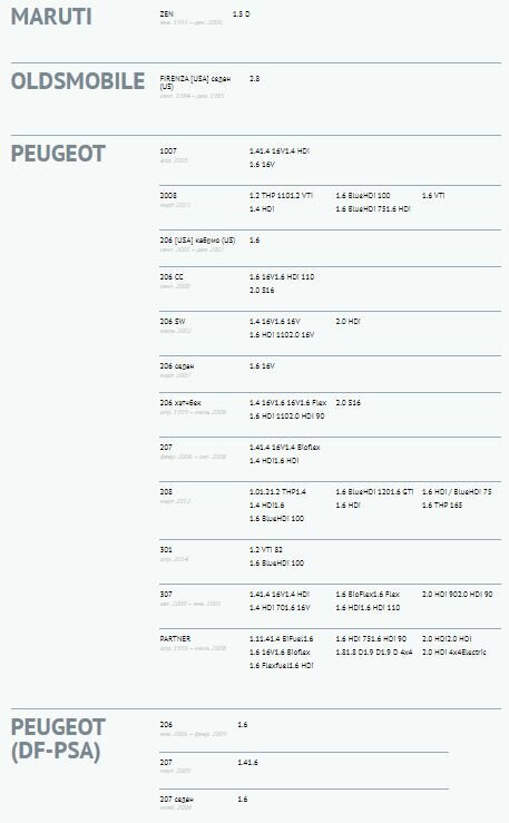 | Модель автомобиля | BERLINGO; XSARA |