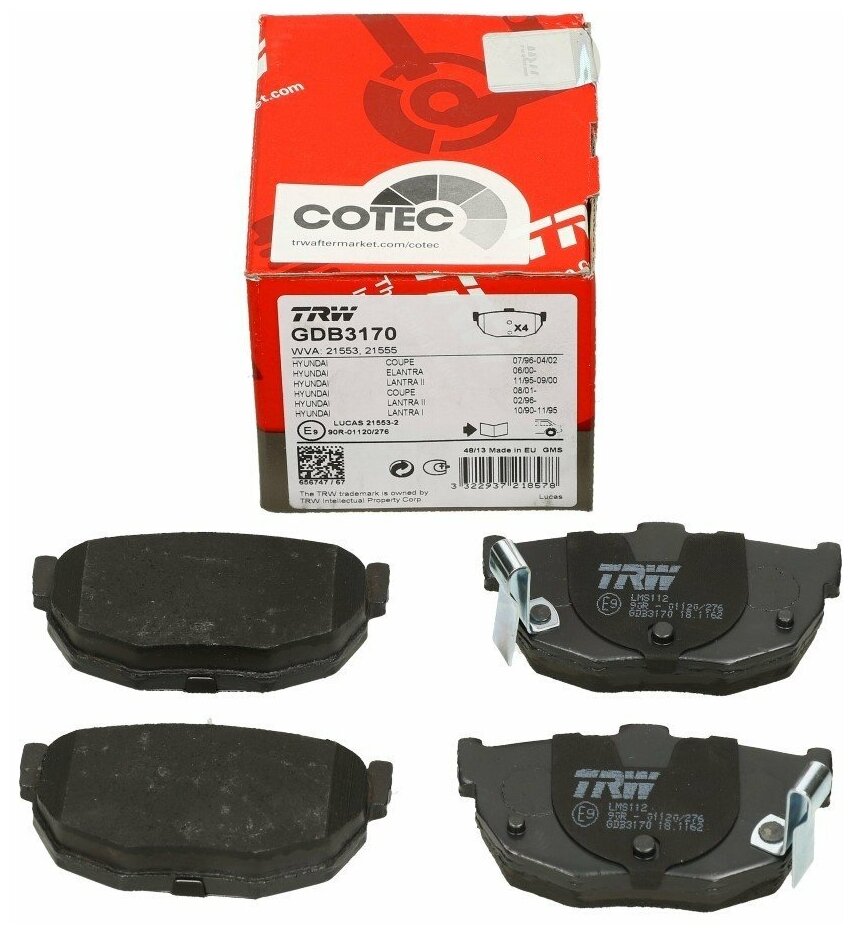 Дисковые тормозные колодки являются основной составляющая тормозного механизма, и от качественной их работы зависит эффективность торможение автотранспортного средства. В процессе интенсивном использовании, техническое состояние тормозных колодок со временем ухудшается и своевременная их замена, позволит повысить безопасность, при эксплуатации автомобиля. Тормозные колодки TRW , используются в дисковых тормозных механизмах. Колодки оснащены фрикционными накладками, с повышенным коэффициентом трения, что обеспечит эффективное торможение при контакте с металлической поверхностью тормозного диска, понижая уровень шум. Также накладки качественно выполняют свою функцию, даже при перепадах температуры, в условиях чрезмерной влажности и запыления. Основою колодок, является каркас, выполнен из прочного металла высокого качества, что обеспечит длительный срок эксплуатации детали. Колодки устанавливаются на задний мост автомобиля.