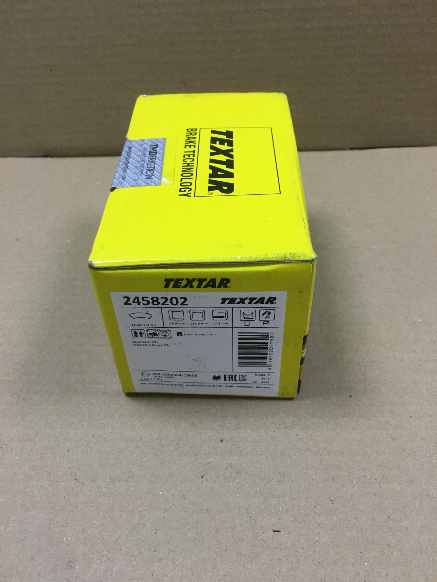 50.000 км.Текстар производится на собственном заводе компании в Германии.Компания TEXTAR входит во всемирно известный концерн TMD Friction Group - один из крупнейших международных концернов по производству фрикционных материалов для автомобильной промышленности. Производственным мощностям TEXTAR был присвоен сертификат качества ISO 9001. Сегодня компания является одним из ведущих поставщиков тормозных систем и их составляющих на конвейерное производство таких автопроизводителей как VW, Skoda, Opel, Chevrolet, GMC, Saab и Fiat.Колодки TEXTAR являются аналогом следующих товаров: 05P1413, 0986494221, 119602, 13046056102, 181868, ADM54296, B110986, BD5118, FDB4062, GDB3501, JQ101104, MDB2935, P49039, PA346AF, PN5806, 5003346, 8DB355013761, LP2111, 0252458217/W, N3603071, CBP31787, 8860, 1043F, 6135019, 2119602, 8DB355013761.Применяемость тормозных колодок TEXTAR для автомобилей MAZDA можно посмотреть на соседней вкладке.