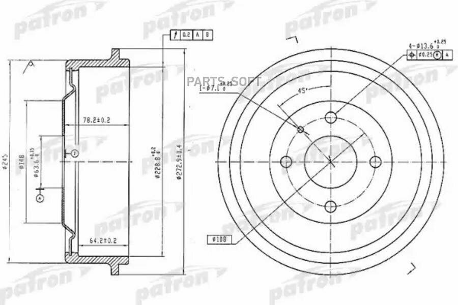 | Диаметр диска/барабана | 245 мм (наружный), 228.6 (внутренний) |