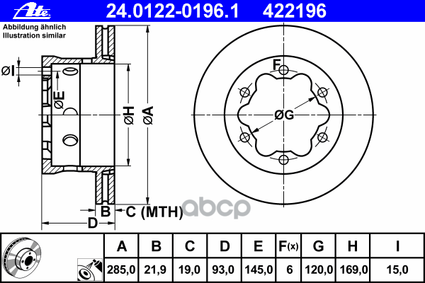 Тормозные диски торговой марки ATE соответствуют техническим требованиям директивы ECE R90. Таким образом, покупатели могут быть уверены в том, что на свободном рынке запчастей они приобретают детали, соответствующие требованиям к заводской комплектации.Применимость: MB Sprinter, VW LT 96>.