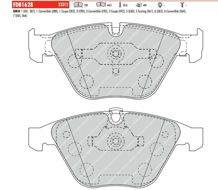 Тормозные колодки FERODO — это выбор в пользу безопасности и комфорта на дороге. Их разработка и тестирование соответствуют стандартам для оригинальных комплектующих, что делает их лучшим выбором для водителей, ценящих надежность и качество.Применяемость: BMW E65/E66 3.5i/4.5i/3.0D/4.0D 01>.