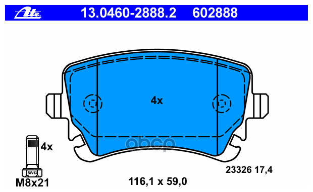 Колодки ATE 13.0460-2888.2.Особенности: