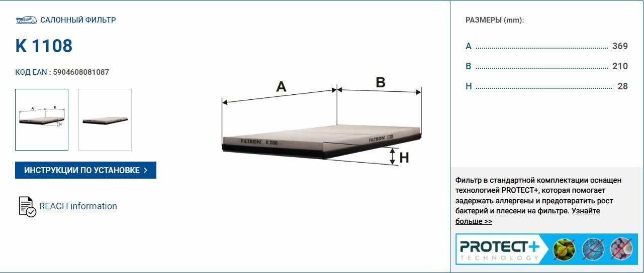 Сервис сравнения цен СкидкаГИД предлагает сравнить цены на товар «Салонный фильтр Filtron K1108»