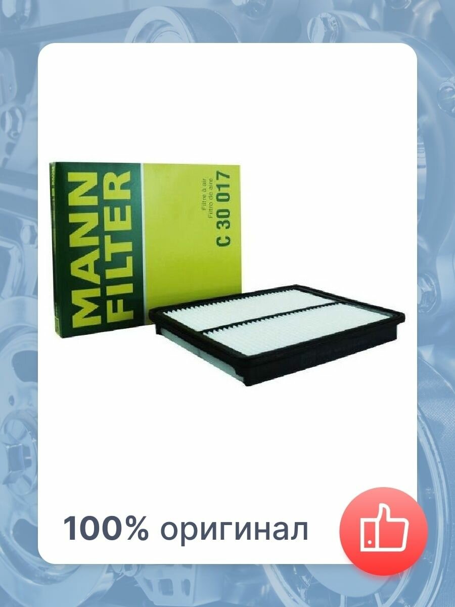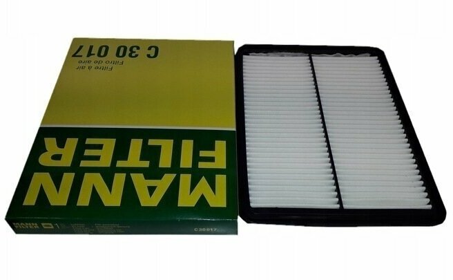 Фильтр воздушный MANN-FILTER C 30017 для HYUNDAI Santa Fe 12-/ KIA Sorento 12- 2.4/ 3.0/ 3.3. Воздушные фильтры MANN эффективно задерживают пыль и абразивные частицы, не давая им попадать в двигатель и защищая его от износа. При этом фильтрующий элемент MANN не создаёт излишнего сопротивления потоку воздуха, что позволяет мотору развивать полную мощность и снижает расход топлива. Также MANN-FILTER сохраняет в чистоте датчик массового расхода воздуха (ДМРВ), гарантируя правильное смесеобразование в цилиндрах.- В фильтрах MANN применяются современные фильтровальные материалы и особая технология гофрирования, гарантирующая прочность и жёсткость конструкции. Складки воздушного фильтра никогда не слипаются и не сминаются, обеспечивая надёжную фильтрацию и хорошее прохождение воздуха.- Специальная пропитка воздушных фильтров MANN защищает их от влаги, сохраняя форму и фильтрующую способность элемента даже после намокания фильтра. Некоторые фильтры MANN дополнительно пропитаны огнестойким составом, защищающим элемент от возгорания из-за тлеющих частиц, рассеянных в воздухе (например, во время лесных пожаров).- Эластичный полиуретановый уплотнитель MANN обеспечивает герметичное прилегание воздушного фильтра, исключая прохождение воздуха в обход фильтрующего элемента (подсос пыли).