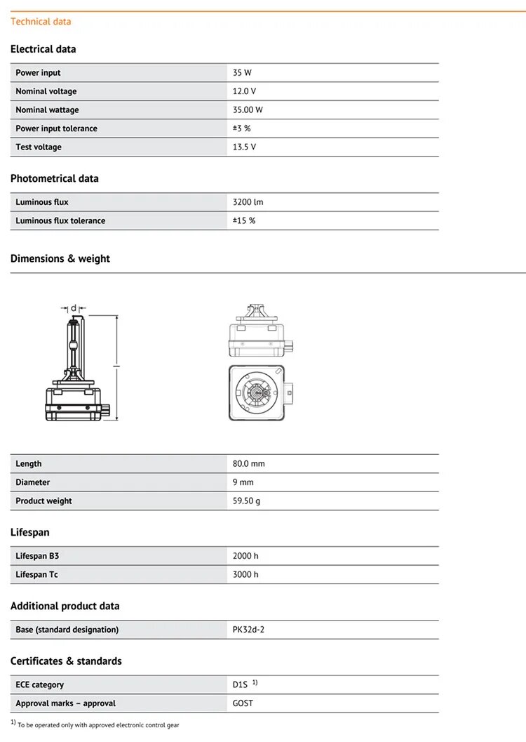 | Цоколь | PK32d-2 |