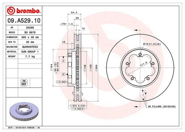Тормозной диск Brembo абсолютно взаимозаменяем с оригинальным диском. Контроль всего производственного цикла позволяет Brembo предлагать тормозные диски, обладающие превосходными эксплуатационными характеристиками, надежностью, долговечностью и комфортом в любых условиях использования. Все диски Brembo имеют cертификат ECE-R90.