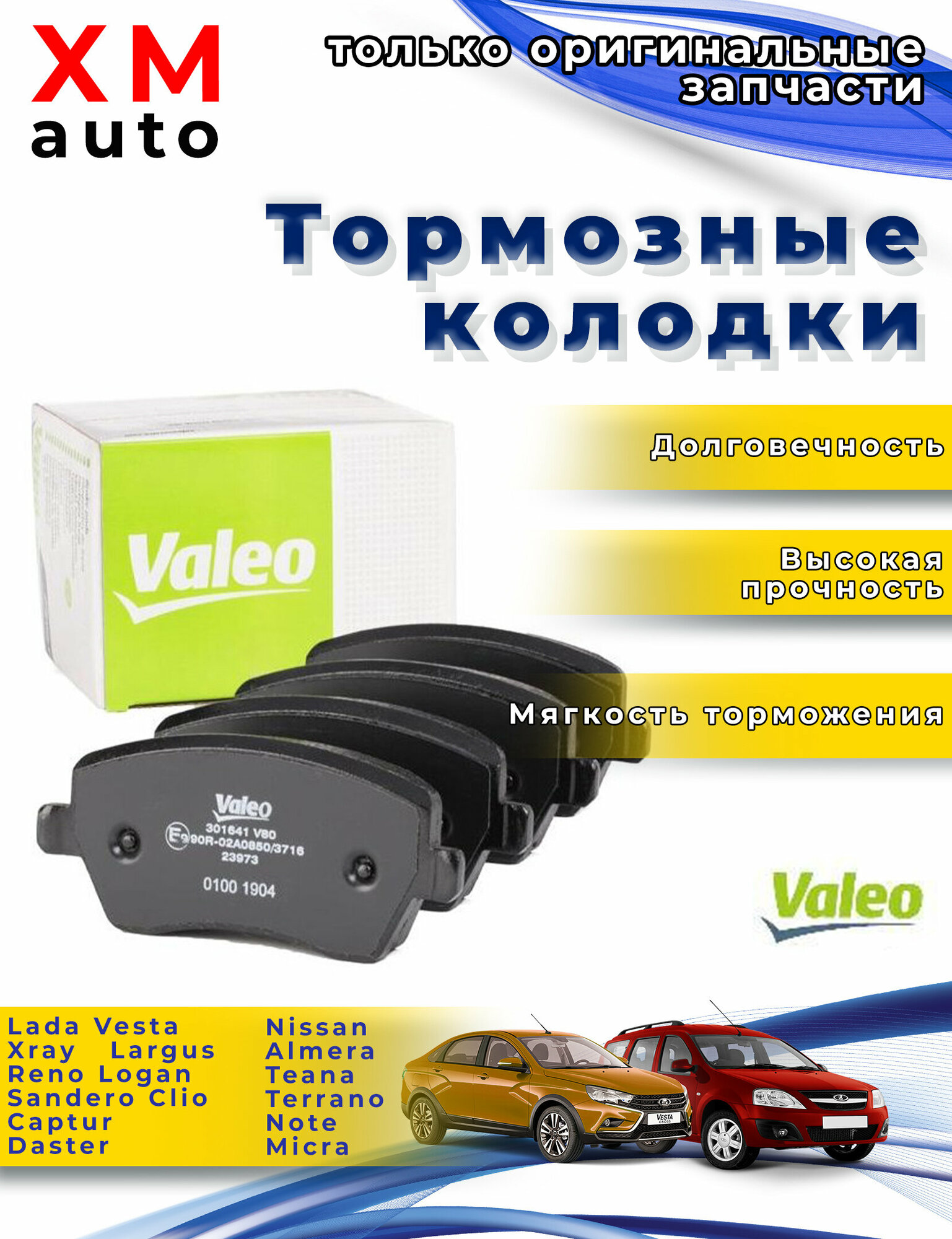 Тормозная колодка (иногда башмак) — часть тормозной системы и её основной рабочий компонент. Именно тормозная колодка создаёт тормозное ускорение, за счёт взаимодействия с поверхностью катания колеса или тормозного диска и преобразования силы нажатия в тормозной момент. Активно применяются на всех видах колесного транспорта. Тормозной колодкой в обиходе также называют противооткатный упор, служащий для дополнительной фиксации транспортного средства при стоянке. Колодки тормозные передние VALEO , RENAULT Duster / Logan / Sandero / NISSAN Note