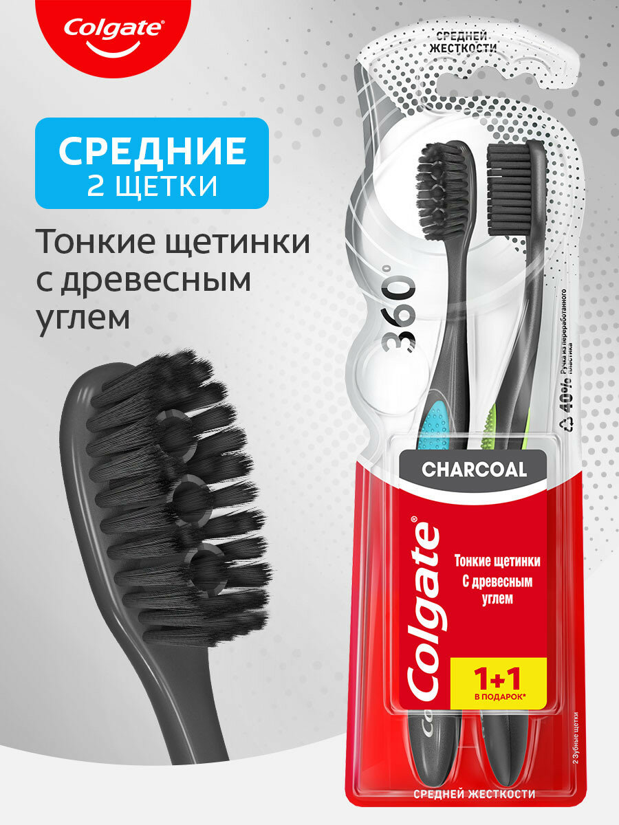 - COLGATE 360 Золотая с древесным углем многофункциональная зубная щетка, мягкая синяя