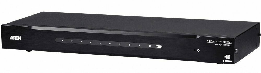 VS0110HA — 10 портовый HDMI-разветвитель с поддержкой 4K. Это решение для одновременной передачи видеосигнала высокой четкости уровня 4K от одного источника к десяти устройствам отображения. Интерфейс HDMI является наиболее широко распространенным для источников и приемников, таких как DVD-проигрыватели, спутниковые приставки, а также и всевозможные дисплеи и мониторы. Поддерживая технологию ATEN EDID, разветвитель VS0110HA обеспечивает непрерывный обмен настройками EDID с подключенными мониторами, гарантируя оптимальный видеосигнал на выходе из всех портов устройства.