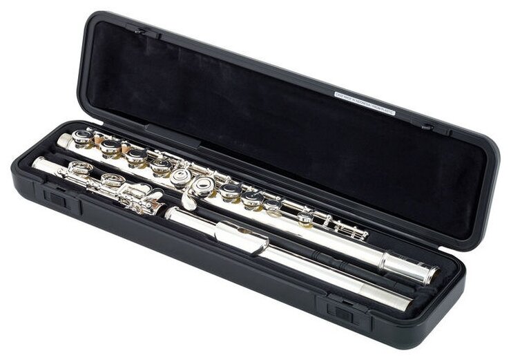 Представленная модель - с коленом "си", она отличается достаточно плотным звучанием. Специальные маркеры на колене флейты позволяют легко собрать флейту даже неопытным молодым музыкантам. Расположение клапанов - не в линию. В комплекте с инструментом поставляется прочный износостойкий пластиковый кейс, способный выдержать продолжительное интенсивное использование при занятиях в музыкальной школе.