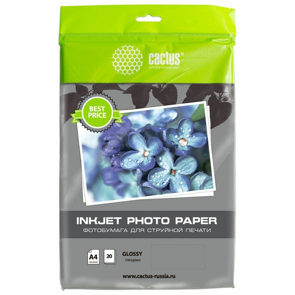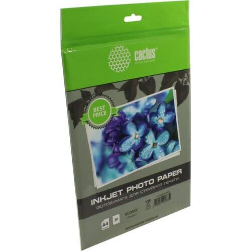Фотобумага Cactus A4/130г/м2/20л./белый глянцевое для струйной печати CS-GA413020ED