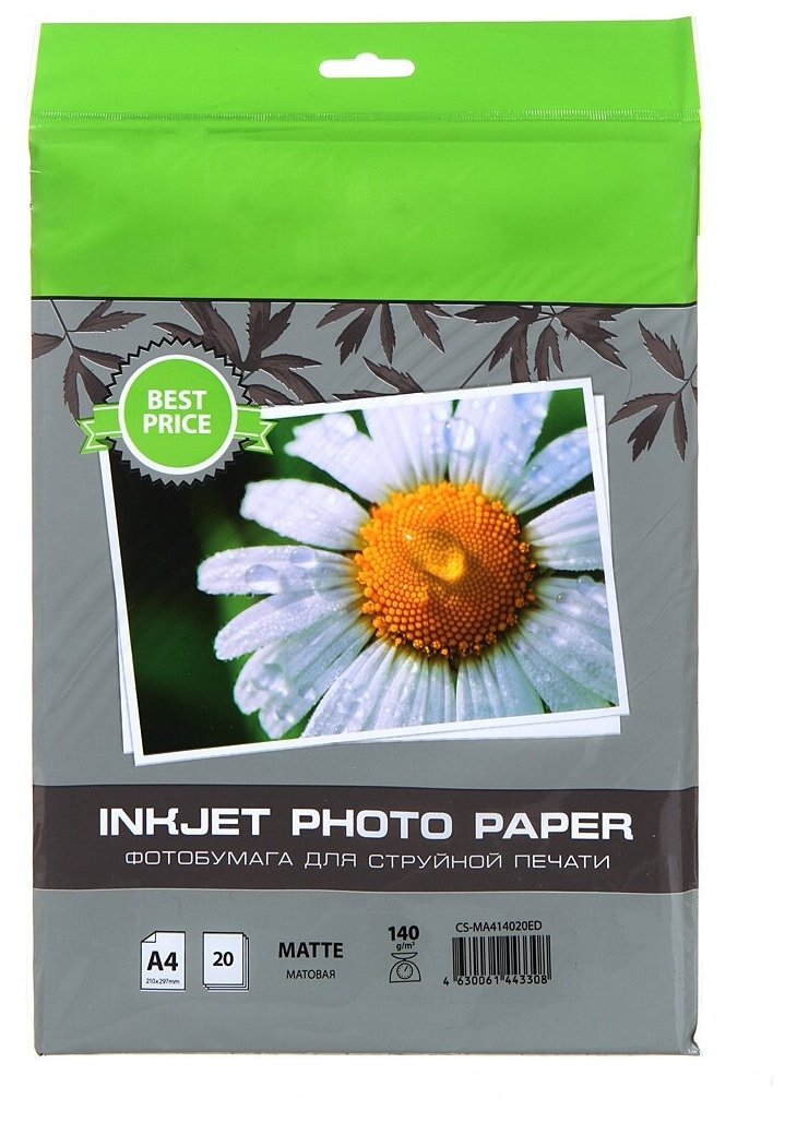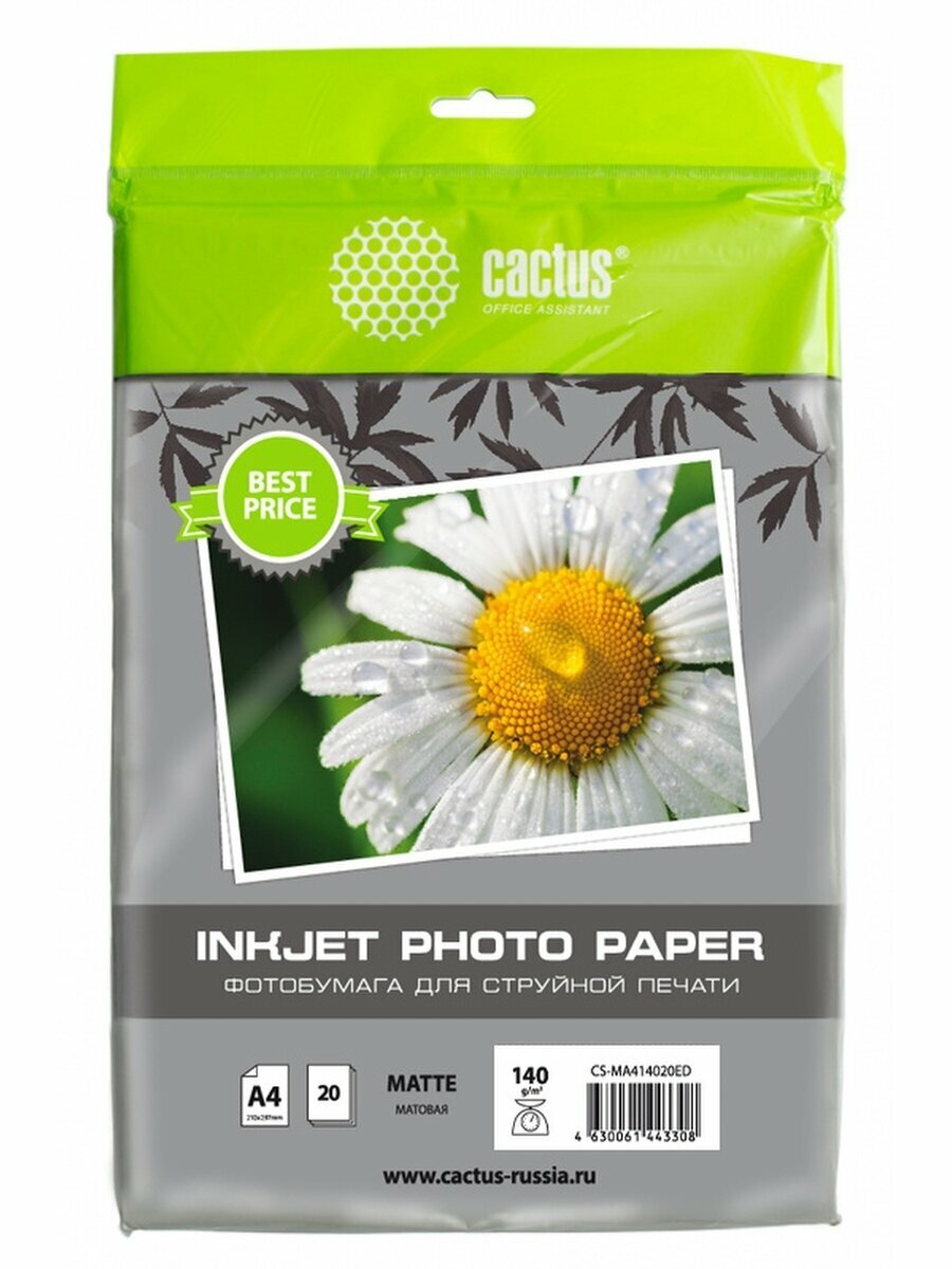 Фотобумага Cactus A4/140г/м2/20л./белый матовое для струйной печати CS-MA414020ED