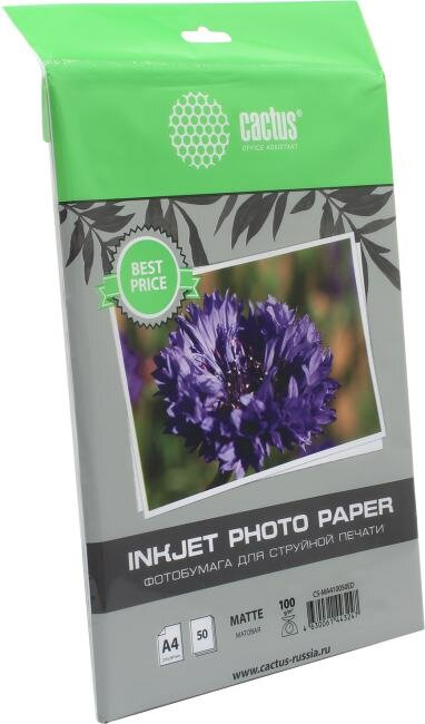 Фотобумага Cactus A4/100г/м2/50л./белый матовое для струйной печати CS-MA410050ED