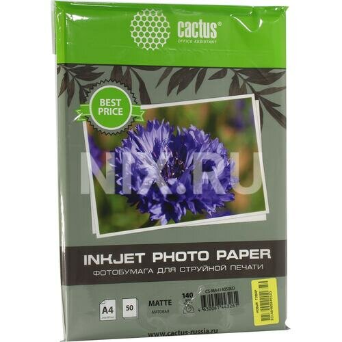 Фотобумага Cactus A4/140г/м2/50л./белый матовое для струйной печати CS-MA414050ED