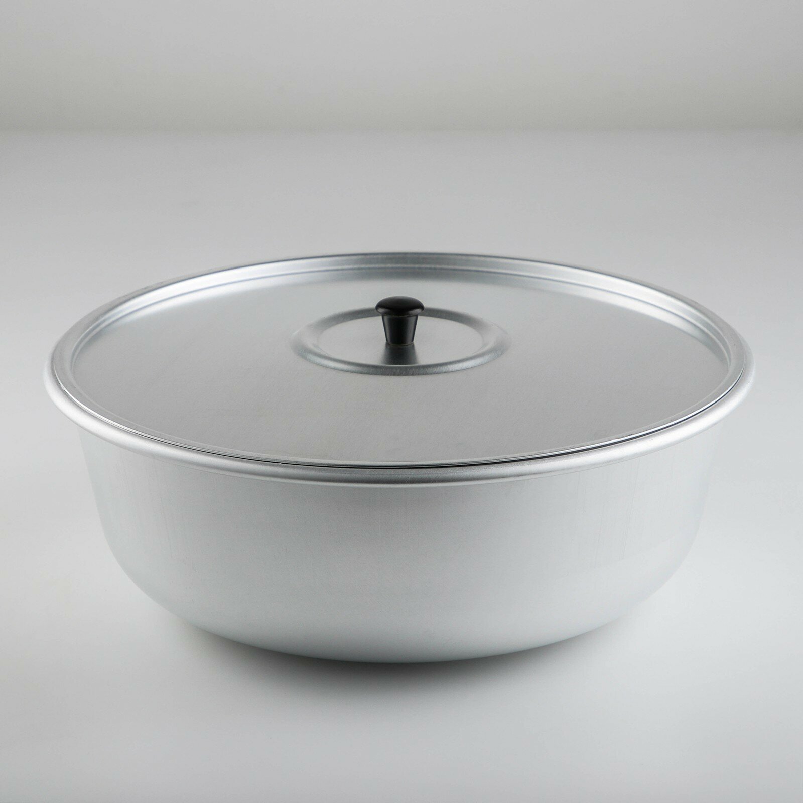 Миска с крышкой выполнена из пищевого алюминия. Незаменима в быту, прекрасно подходит для приготовления и хранения. Она достаточно легкая и при этом с прочными и толстыми стенками. Поверхность изделия устойчива к царапинам.
