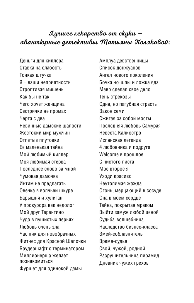 | Серия | Авантюрный детектив. Романы Татьяны Поляковой |