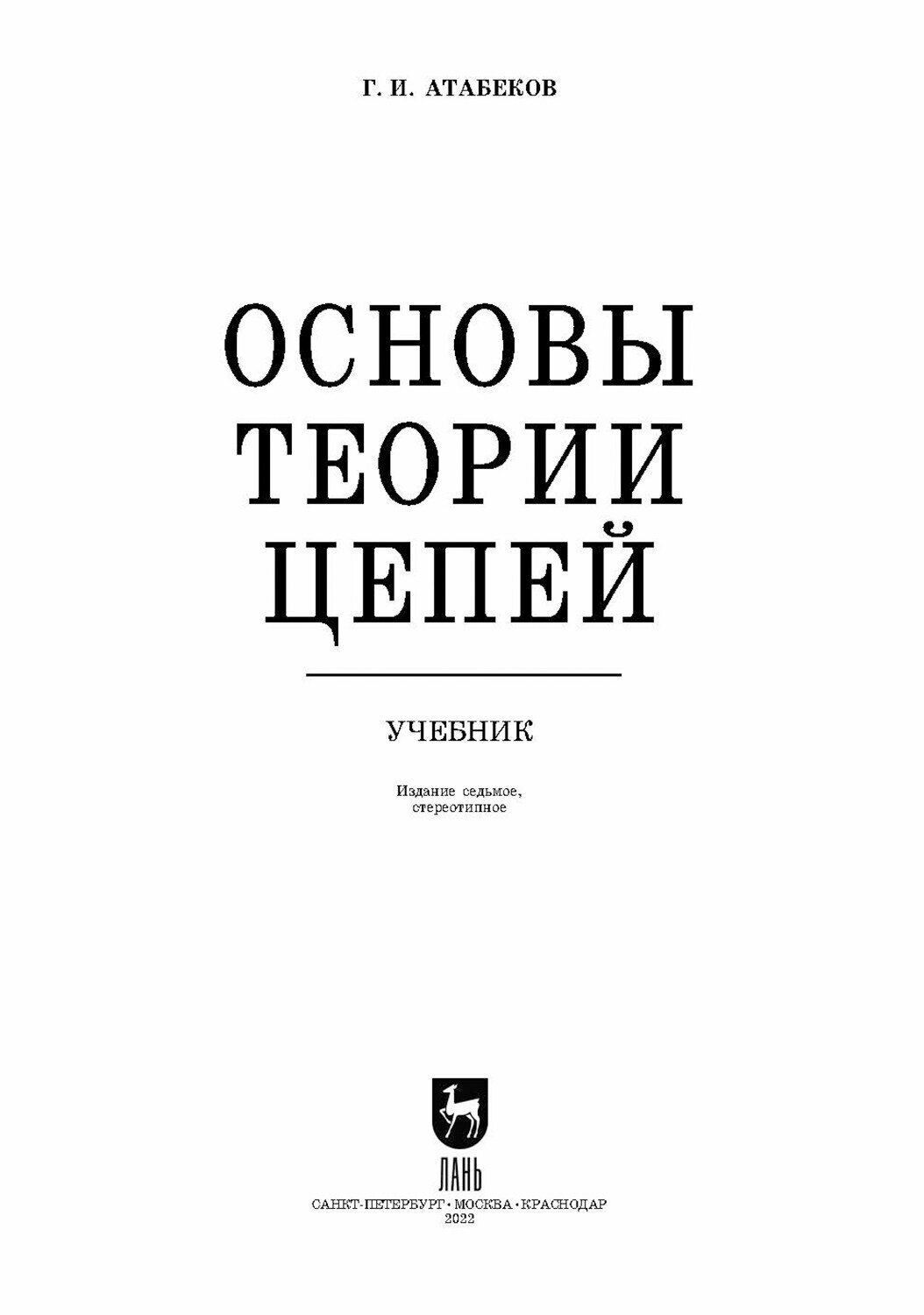 Основы теории цепей. Учебник (Григорий Иосифович Атабеков); Лань, 2006