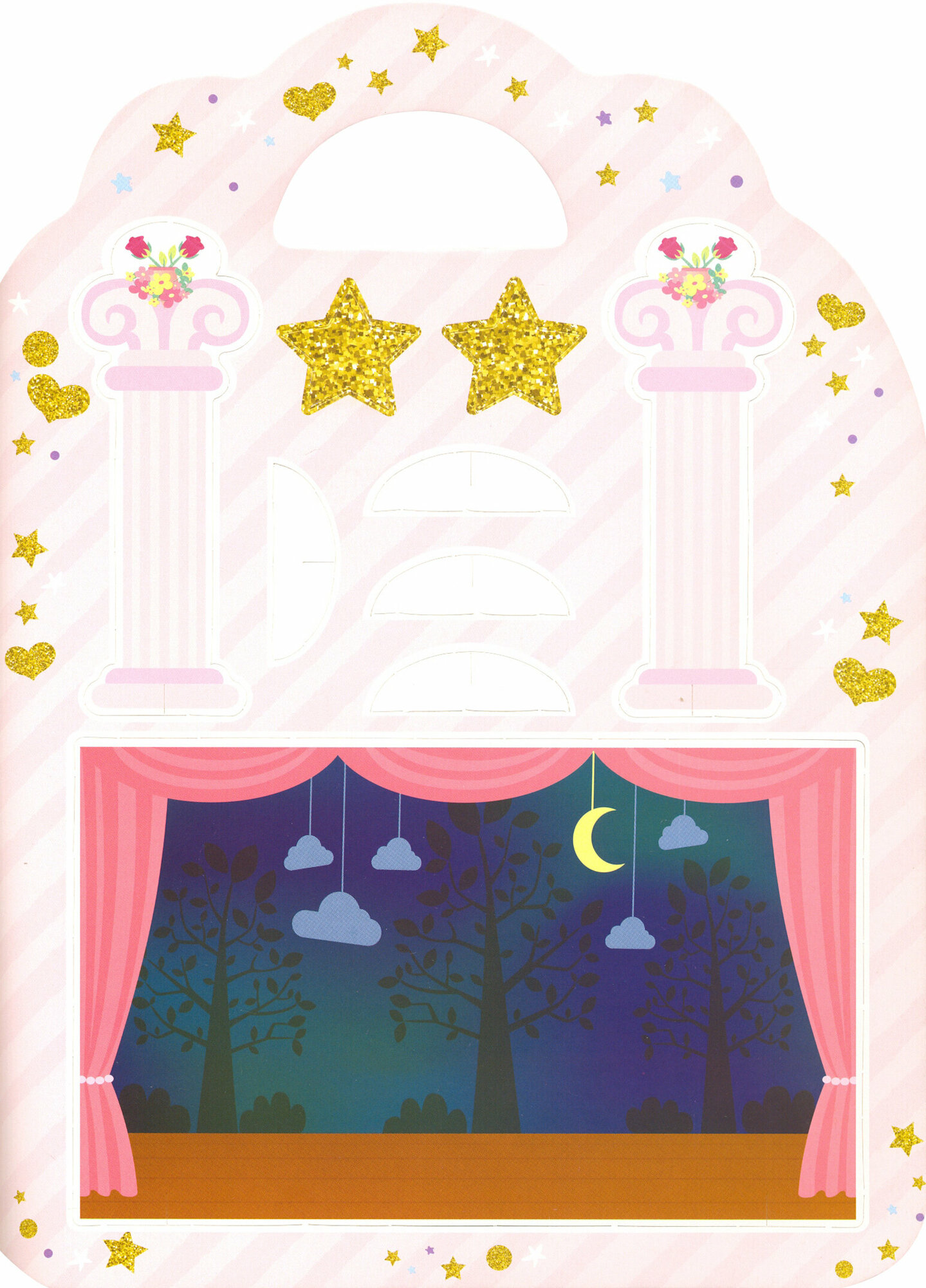 В этой книжке ты найдешь не только сотни ярких наклеек, но и настоящий картонный театр: фигурки балерин и декорации к спектаклю!
