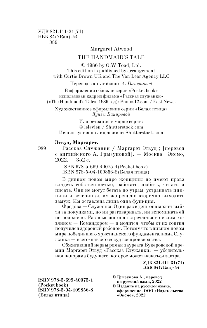 Книга: Рассказ Служанки (Маргарет Этвуд); Эксмо, Редакция 1, 2020
