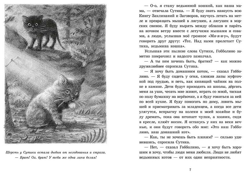 А вот ее братец Гобболино не хочет быть плохим! И быть ведьминым котом тоже не хочет! Все, что ему надо, – это хороший уютный дом, дружелюбная семья, много детей, младенец в колыбели, теплая печка да чайник, что свистит на плите. Гобболино мечтает быть домашним котом. И с точки зрения любой ведьмы, это просто стыд и позор!