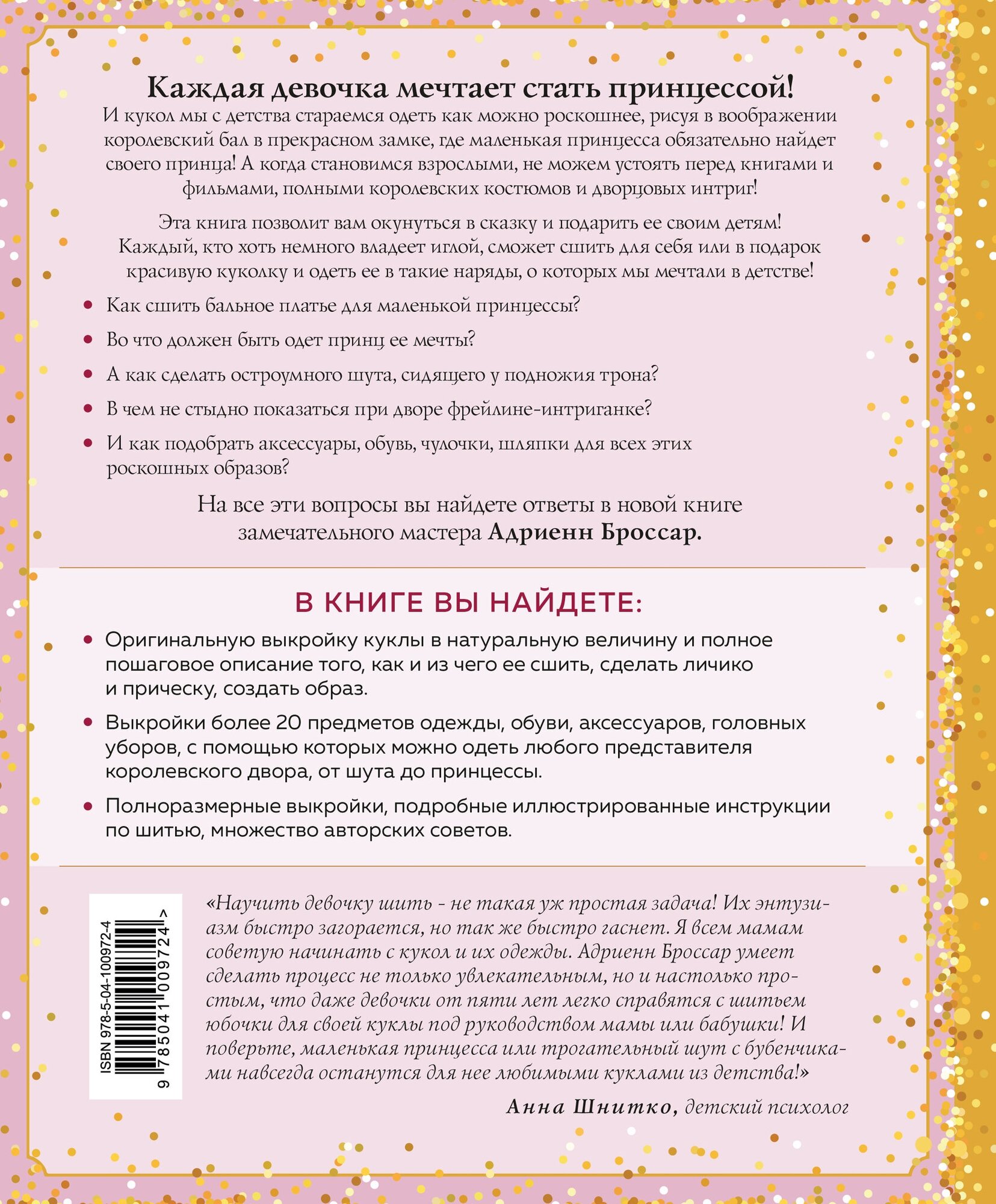 Имя Адриенн Броссар уже хорошо известно любителям текстильных кукол ручной работы. Ее куколки не просто обладают французским шармом, а имеют обширный гардероб на все случаи жизни! В новой книге автор представляет читателю еще одну выкройку куклы, но не просто куклы, а настоящей принцессы, которую с помощью уникальных авторских костюмов можно превратить в шута, принца, фрейлину. Все в ваших руках, а автор с удовольствием поделится с вами своими знаниями, умениями и советами. Создайте собственную волшебную сказку, действие которой происходит при дворе французских королей! Для этого всего-то и нужно что минимальные навыки владения иглой, справится даже подросток!
