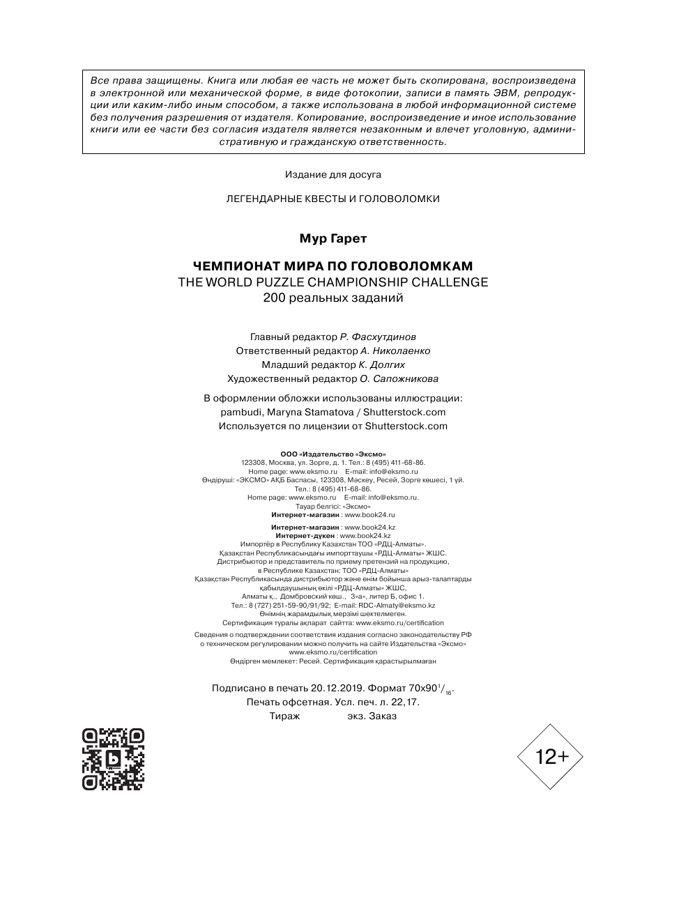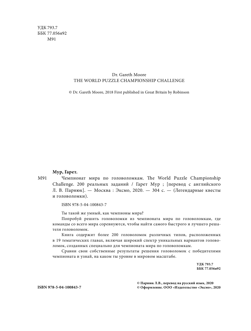 Чемпионат мира по головоломкам. The World Puzzle Championship Challenge. 200 реальных заданий (Гарет Мур); Эксмо, 2020