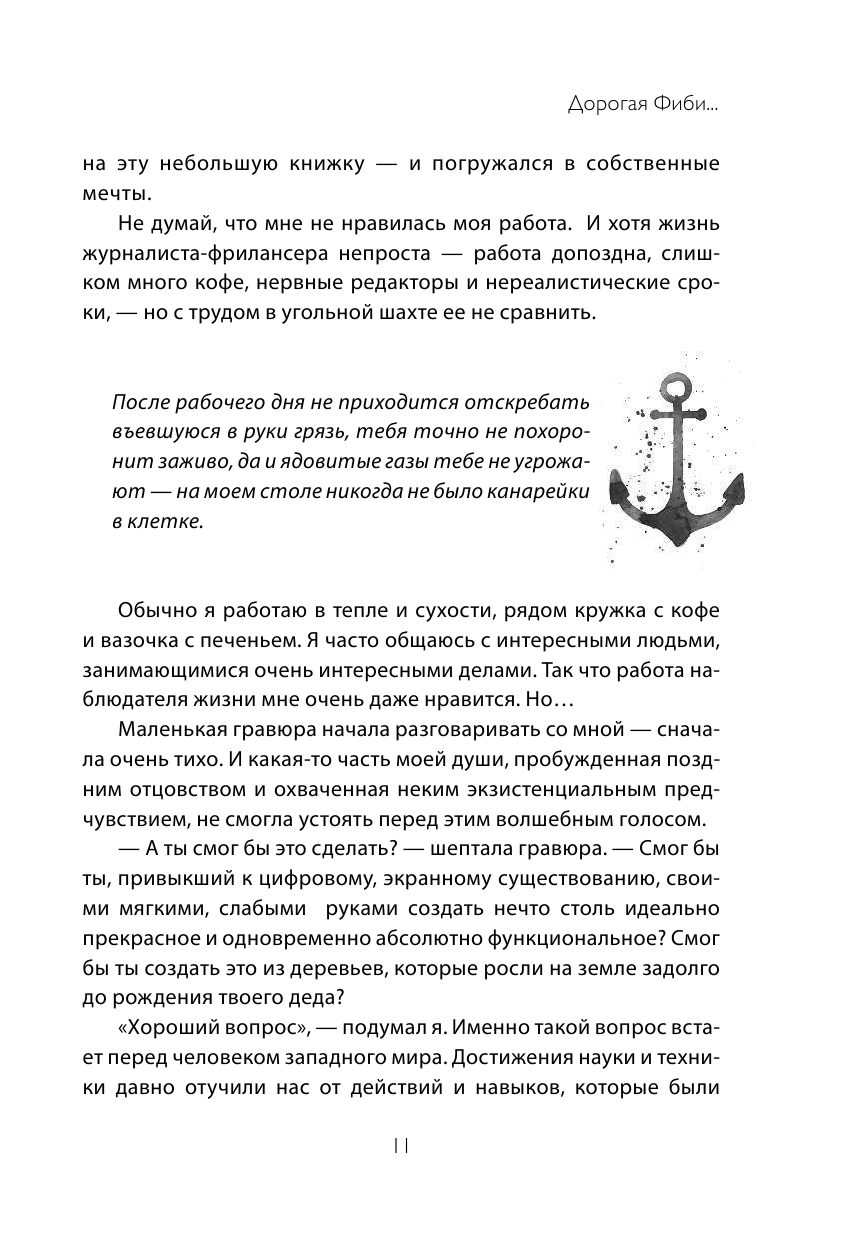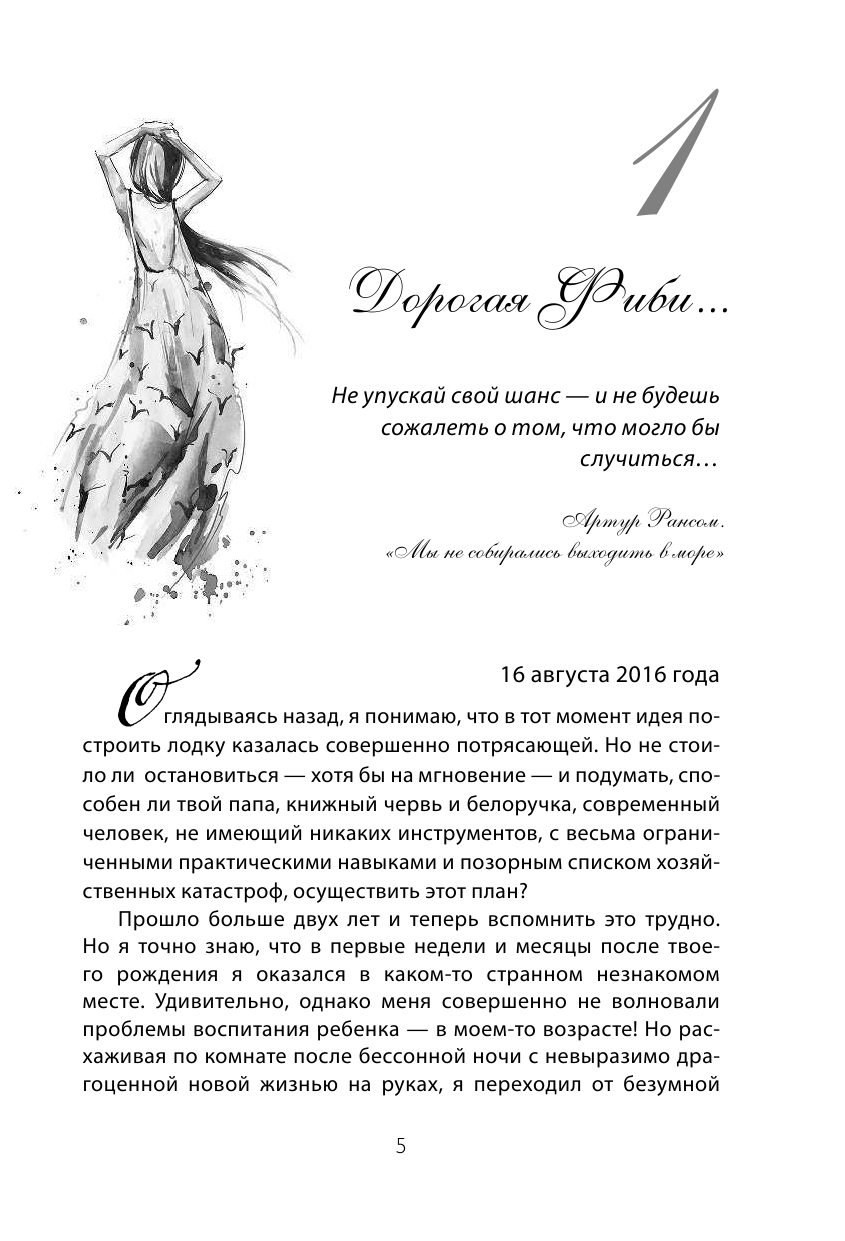 Как я поняла, автор рассказывает о себе, о том, как в уже почтенном возрасте (около 50 лет вроде) у него рождается дочь и он понимает, что у него не так много времени с ней на этой земле осталось. Поэтому он хочет подарить своей дочери свою мечту и, ничего не умея, строит настоящую лодку с нуля. Это потрясающий опыт и вдохновляющее путешествие, в которое автор берет читателя.