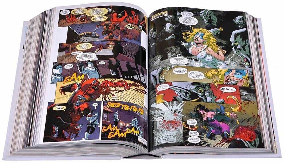 У каждого коллекционера или фаната болтливого наёмник Дэдпула на полке обязательно должен стоять этот комикс ведь это толстое издание содержит в себе такую шикарную историю, что хочется её перечитывать! Купив этот комикс вы ни на секунду не пожалеете об этом!