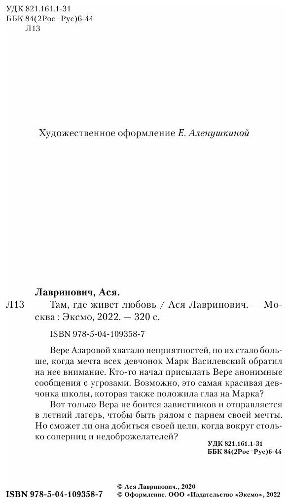 Книга: Там где живет любовь (Ася Лавринович); Эксмо, Like Book, Редакция 1, 2025