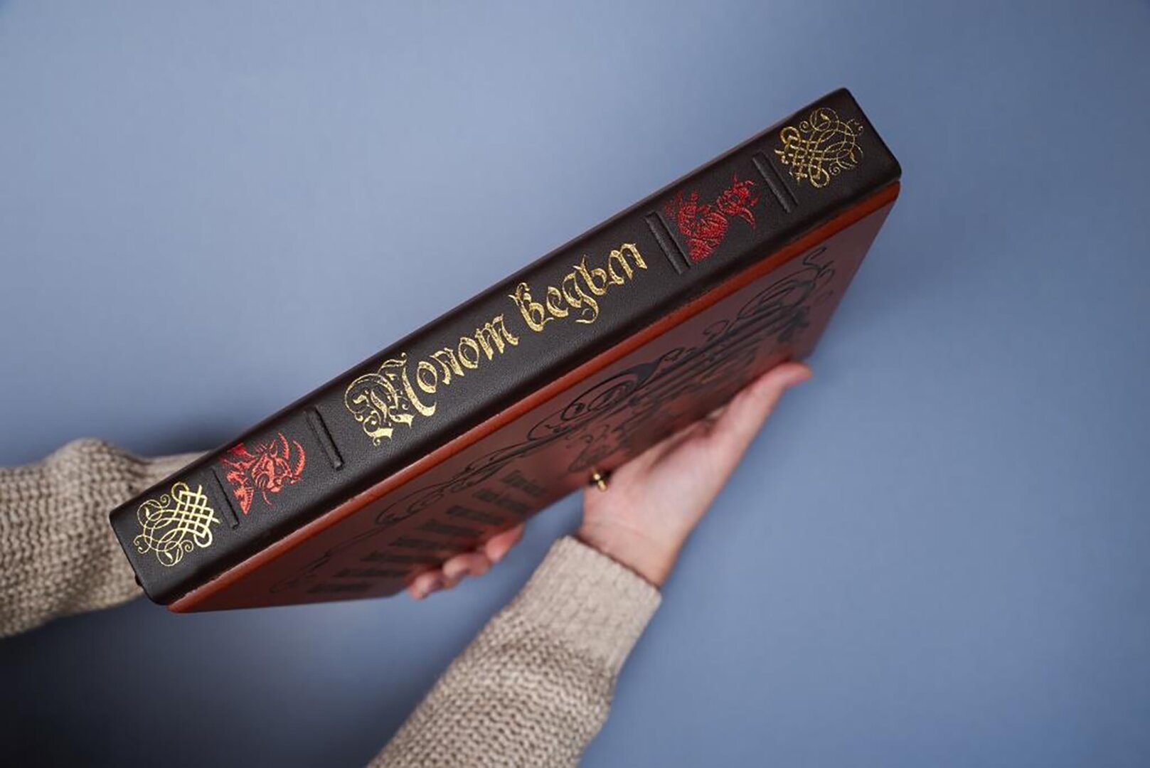 Приобретала в "Лабиринте" предыдущее издание от "Эксмо" 2011 года. Обложка деревянная, корешок кожаный.