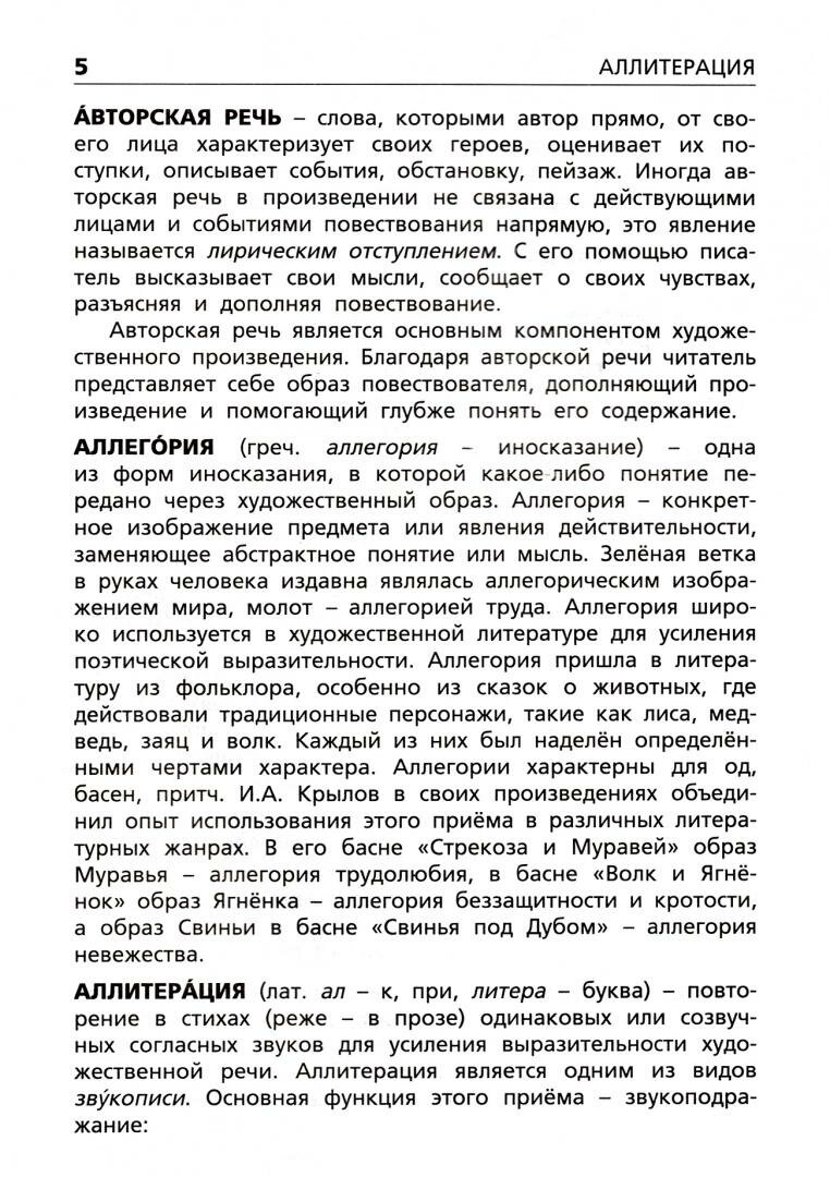 В словаре дается объяснение значений литературоведческих терминов, встречающихся на уроках литературного чтения и литературы в школе. Для наглядности приводятся примеры из литературных произведений. Книга поможет ученикам 3–7 классов подготовиться к уроку