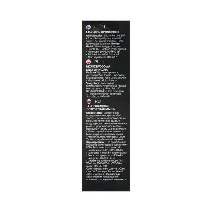 | Комплект поставки | Мышь беспроводная, USB-приемник, кабель USB, документация |