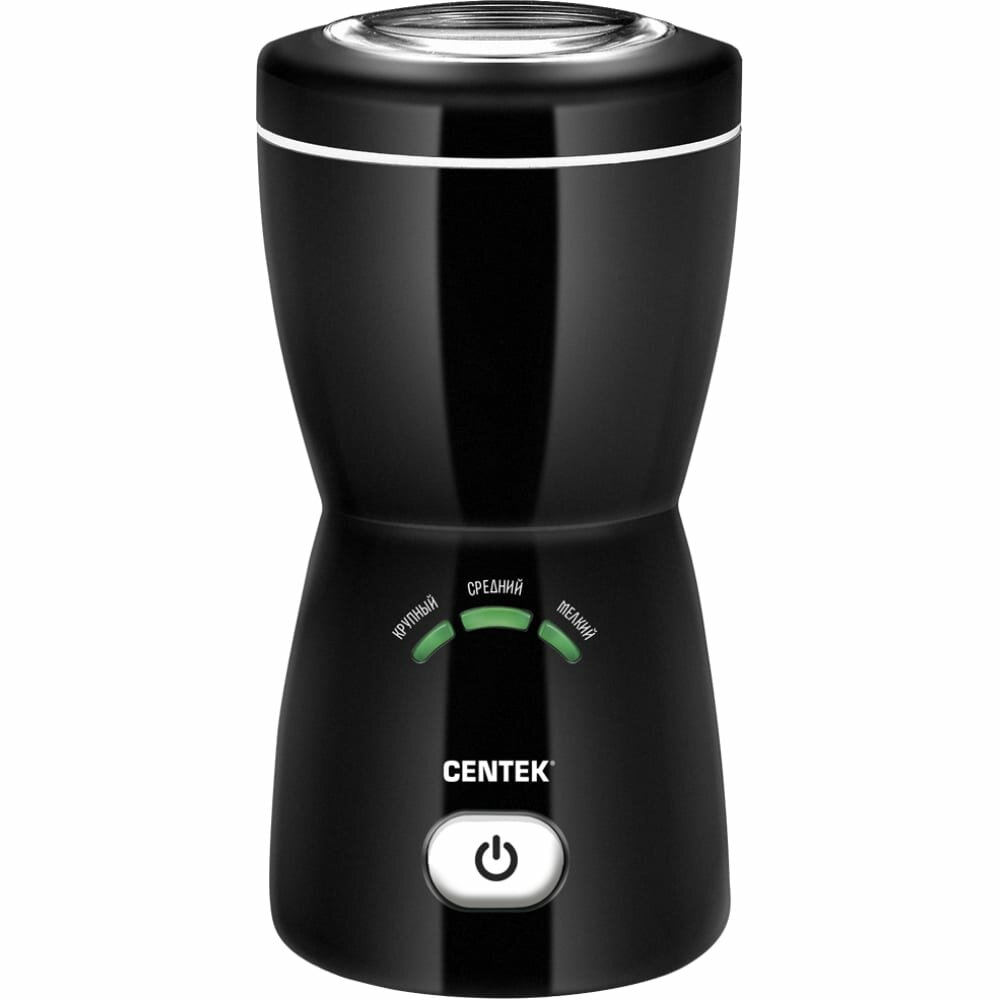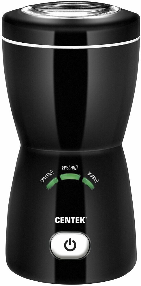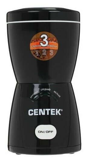 Кофемолка CENTEK – прекрасный выбор для всех любителей кофе! Вместимость чаши для кофе составляет 80 грамм, этого будет вполне достаточно на несколько полноценных чашек кофе. Кофемолка имеет двигатель мощностью 200 Вт, этого достаточно, чтобы измельчит такие продукты, как кофе, сахар, специи или орехи. С помощью данного прибора можно перемолоть кофейные зерна для различного типа кофеварок, а степень помола зависит от времени удерживания кнопки пуска, чем дольше, тем мельче получается конечный продукт.