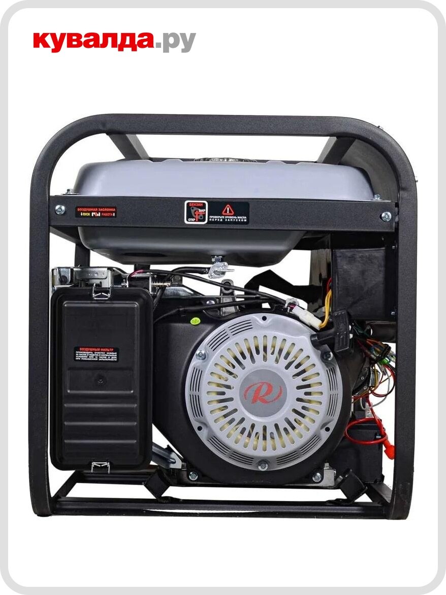 Купили такой генератор для магазина на случай отключения света. Он мощный - 6.50 кВт, выдерживает несколько холодильников и кондиционер. Бак объемом - 25 литров, полного бака хватает на часов 12 - 13 непрерывной работы. Запуск тут ручной, но проблем с ним нет, запускается почти всегда с первого раза.