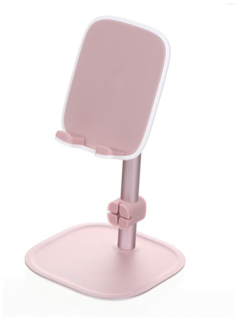 Держатель Baseus выполнен из прочного алюминия, а устойчивость конструкции обеспечена широкой платформой, которая также служит для хранения различных аксессуаров. В днище держателя использованы резиновые накладки, благодаря чему он не оставляет следов на покрытии стола или тумбы.