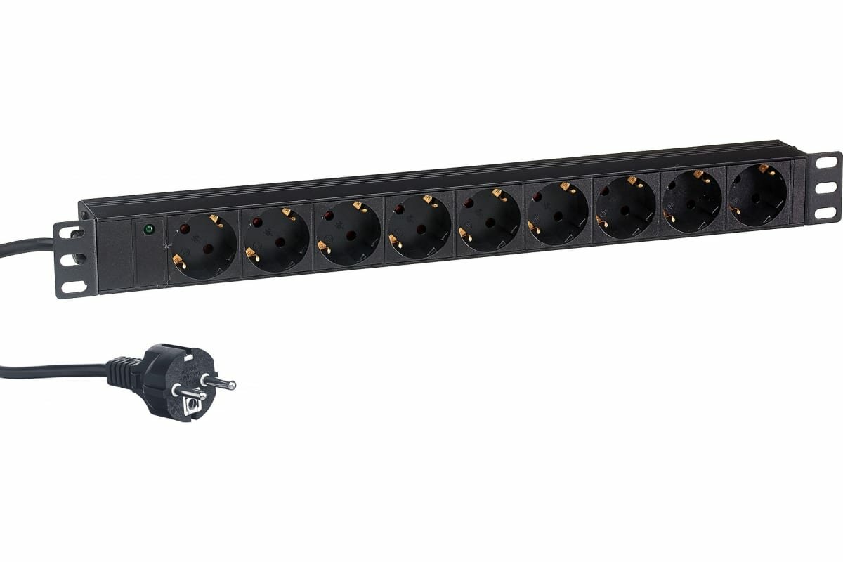 Exegate EX280848RUS Блок розеток ExeGate ServerPro PDU-19H902 Al-9S-EU1.8, 19",1U,алюм, 9Schuko, евровилка, 1.8м