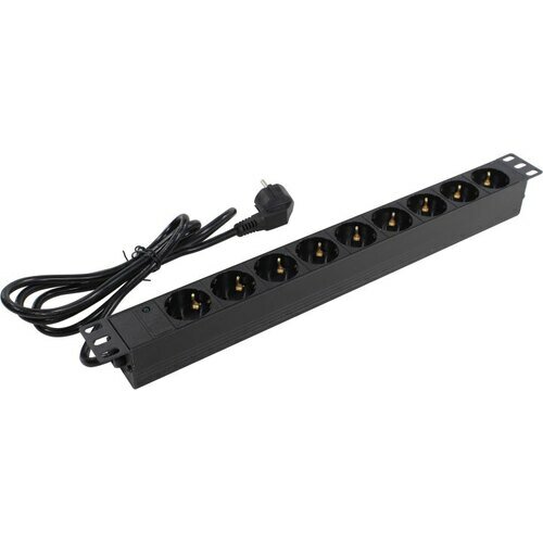 Exegate EX280848RUS Блок розеток ExeGate ServerPro PDU-19H902 Al-9S-EU1.8 19"1Uалюм 9Schuko евровилка 1.8м