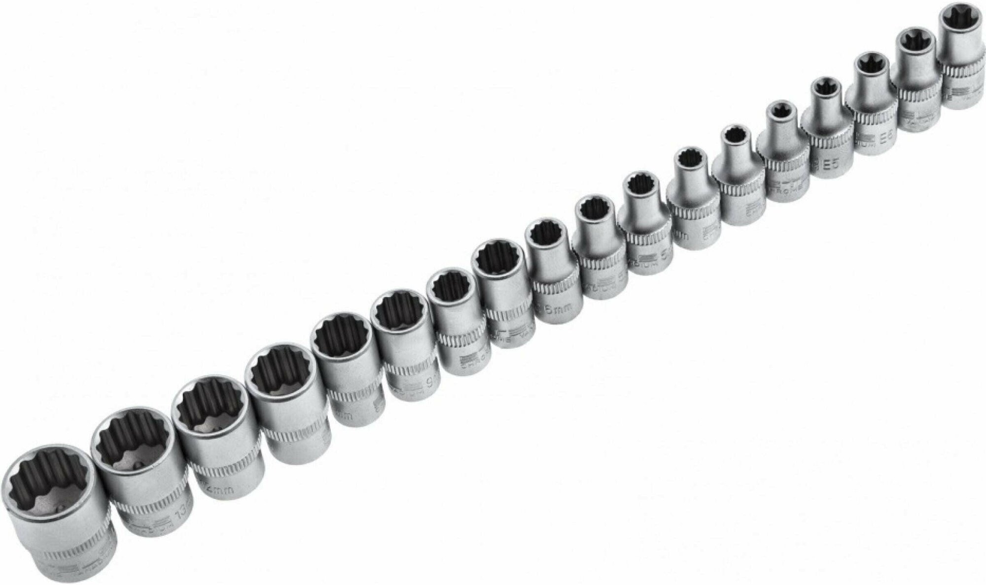 | Торцевые головки E-тип | 1/2″ (Е10, Е11, Е12, Е14, Е16, Е18, Е20, Е24), 1/4″ (Е4, Е5, Е6, Е7, Е8) |